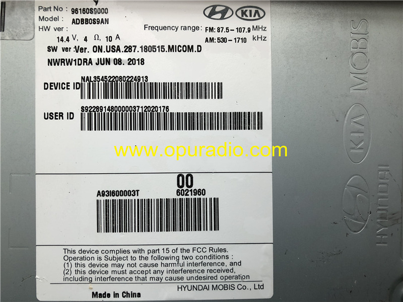 96160S9000 Radio for 2018 2019 KIA Telluride Car Media HYUNDAI MOBIS SiriusXM Carplay