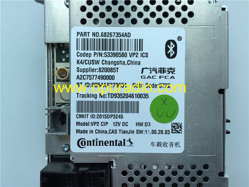 Continental VP2 CIP Radio Phone Compass Climate Uconnect Bluetooth for 2015 2016 Jeep Chrysler car audio Tuner Range AM 531 to 1602KHz FM 87.0 to 108.0MHz