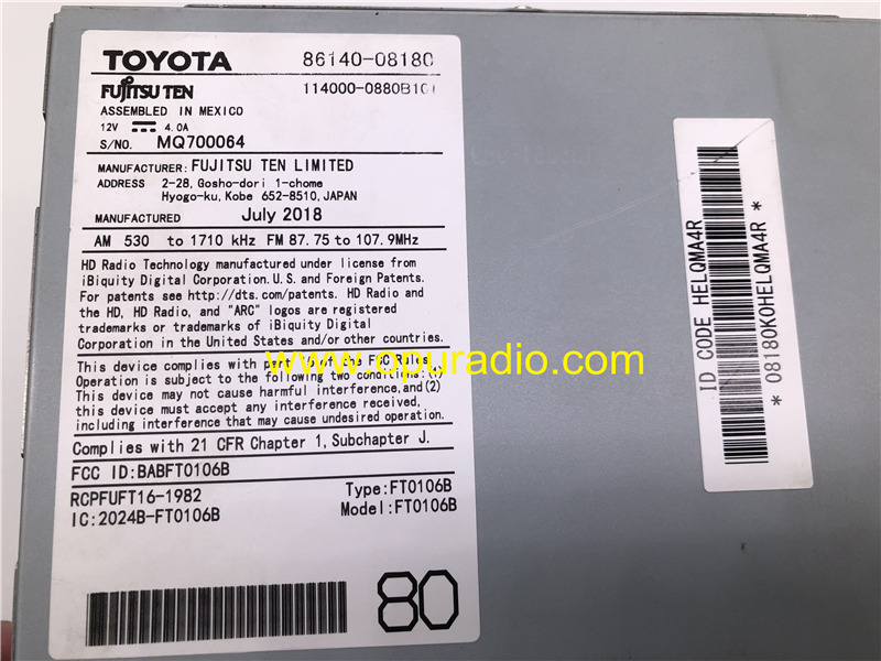FUJITSU TEN 86140-08180 HD RADIO for 2018 2019 TOYOTA SIENNA ENTUNE PREMIUM 3.0 TOUCH SCREEN CARPLAY