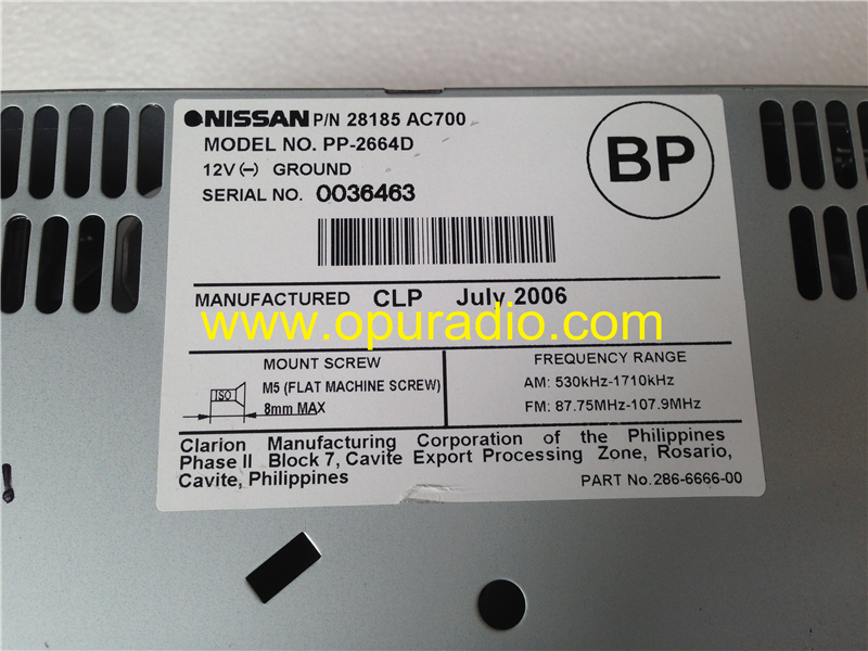 Nissan 28185 AC700 28185 AC705 Bose 6 Disc CD changer with MP3 Player radio OEM Factory for Infiniti G35 Coupe 2005 2006 2007 Clarion PP-2664D PP-2665D US Canada version
