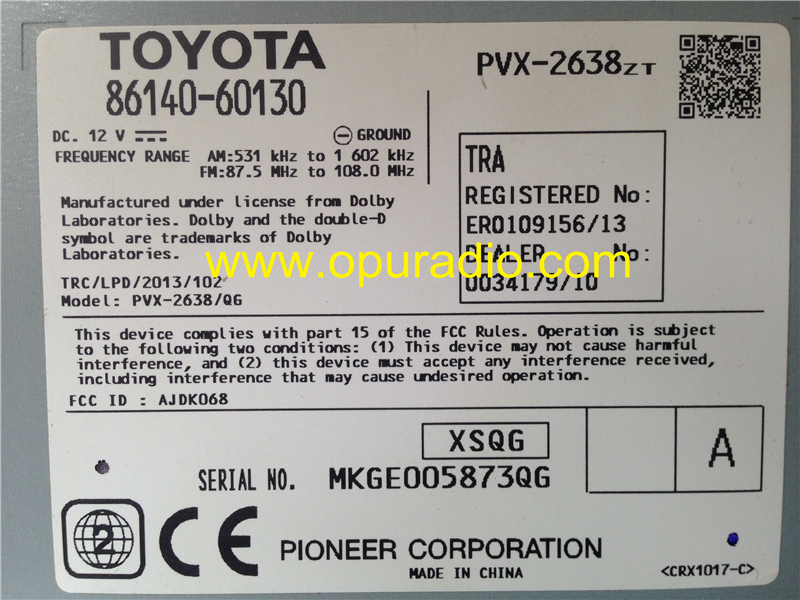 TOYOTA 86140-60130 Pioneer DVD PVX-2638 head unit for Toyota Prado MP3 AUX Bluetooth car radio